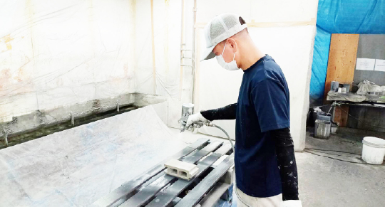 手吹き塗装用湿式塗装ブース(長さ6,000mmまで塗装可能)